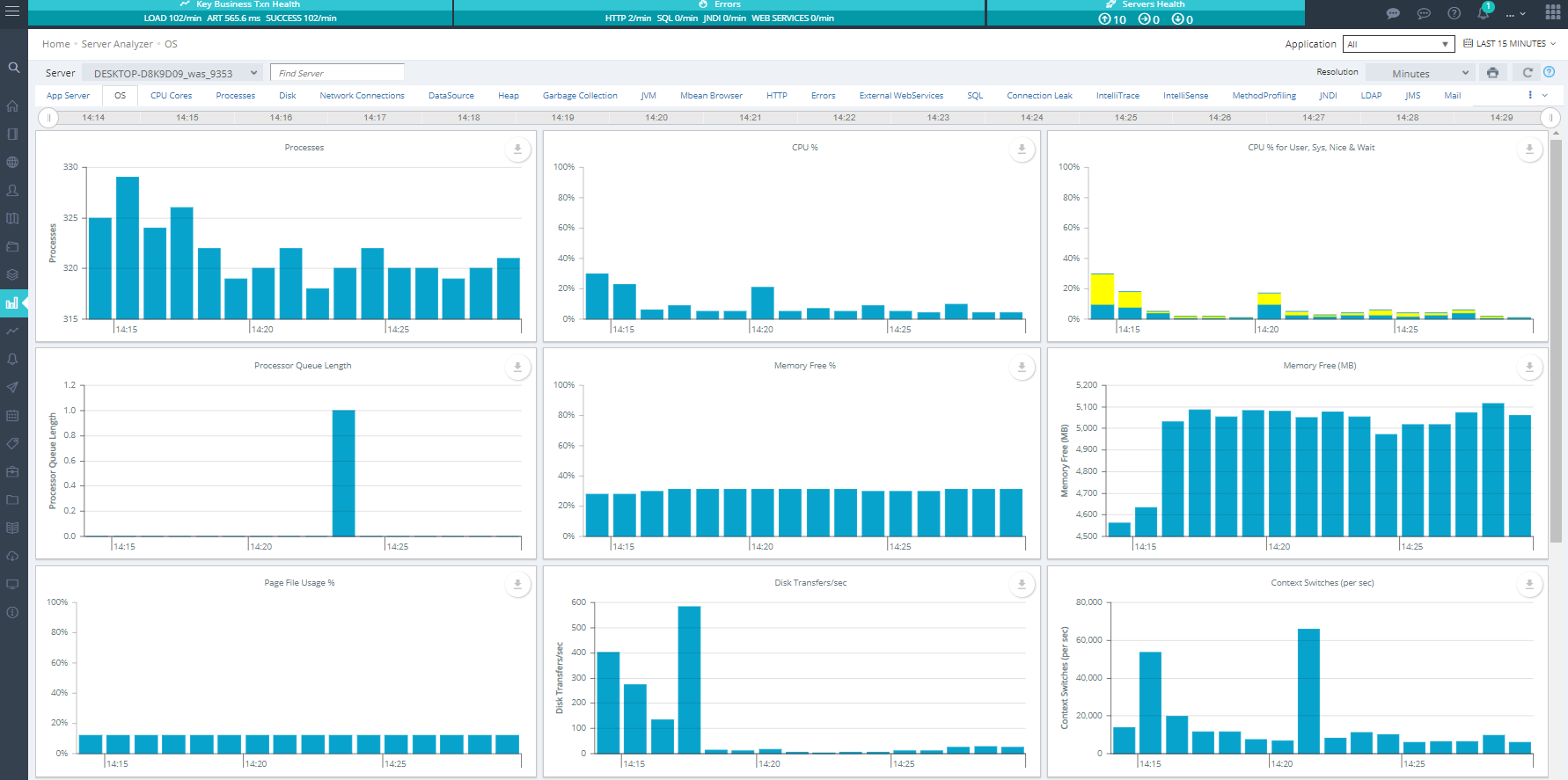 The OS Internals Analyzer offers a quick and convenient view into your physical server's processes, network activity, CPU usage, memory and storage performance.