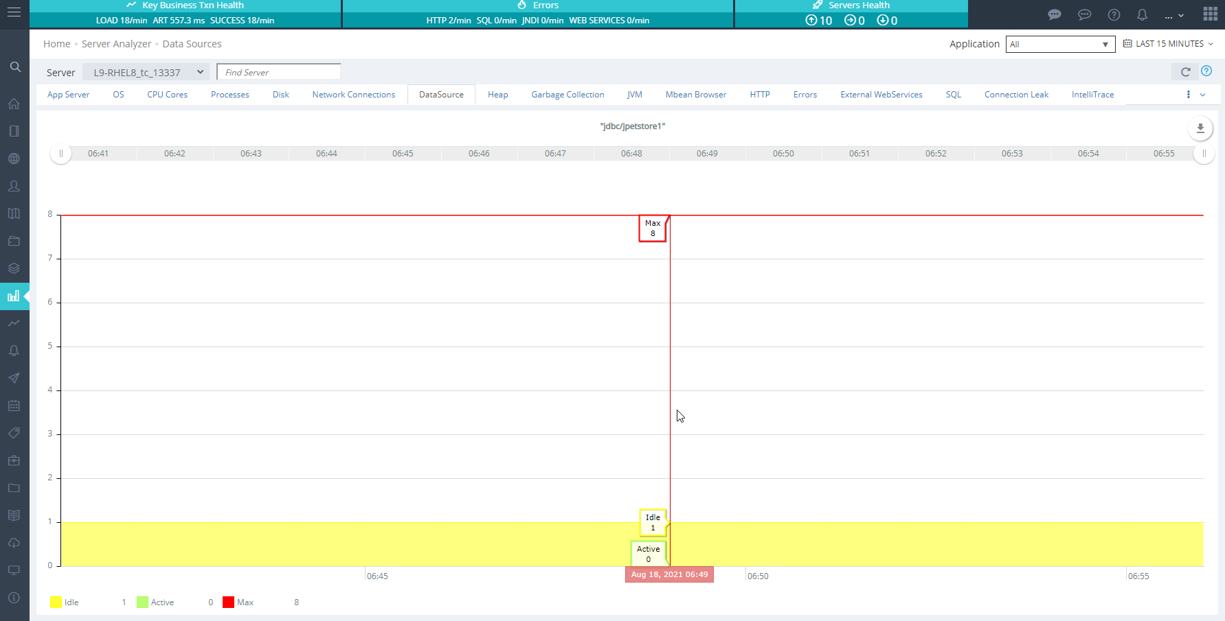 The DataSource Analyzer provides a fast and convenient window into various data source's usage. Datasource utilization is very useful in finding out issues related to connections running out and tuning of connection pools.