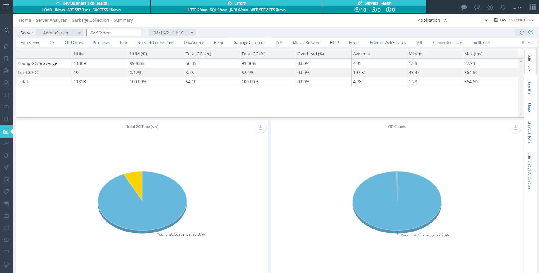 The GC Analyzer provides a fast and convenient window into your server's garbage collector behavior. This gives you the ability to quickly spot garbage collection issues and tweak GC parameters to improve performance and reduce latency of your applications.