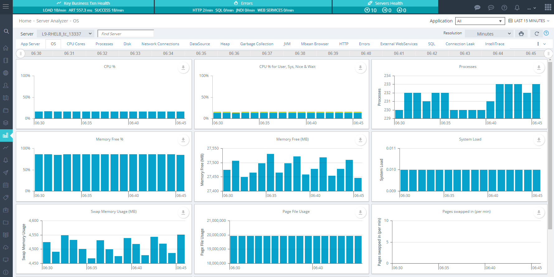 The OS Internals Analyzer provides a fast and convenient window into your physical server's/VM's performance including # of processes, tcp connections, CPU, memory and storage performance.
