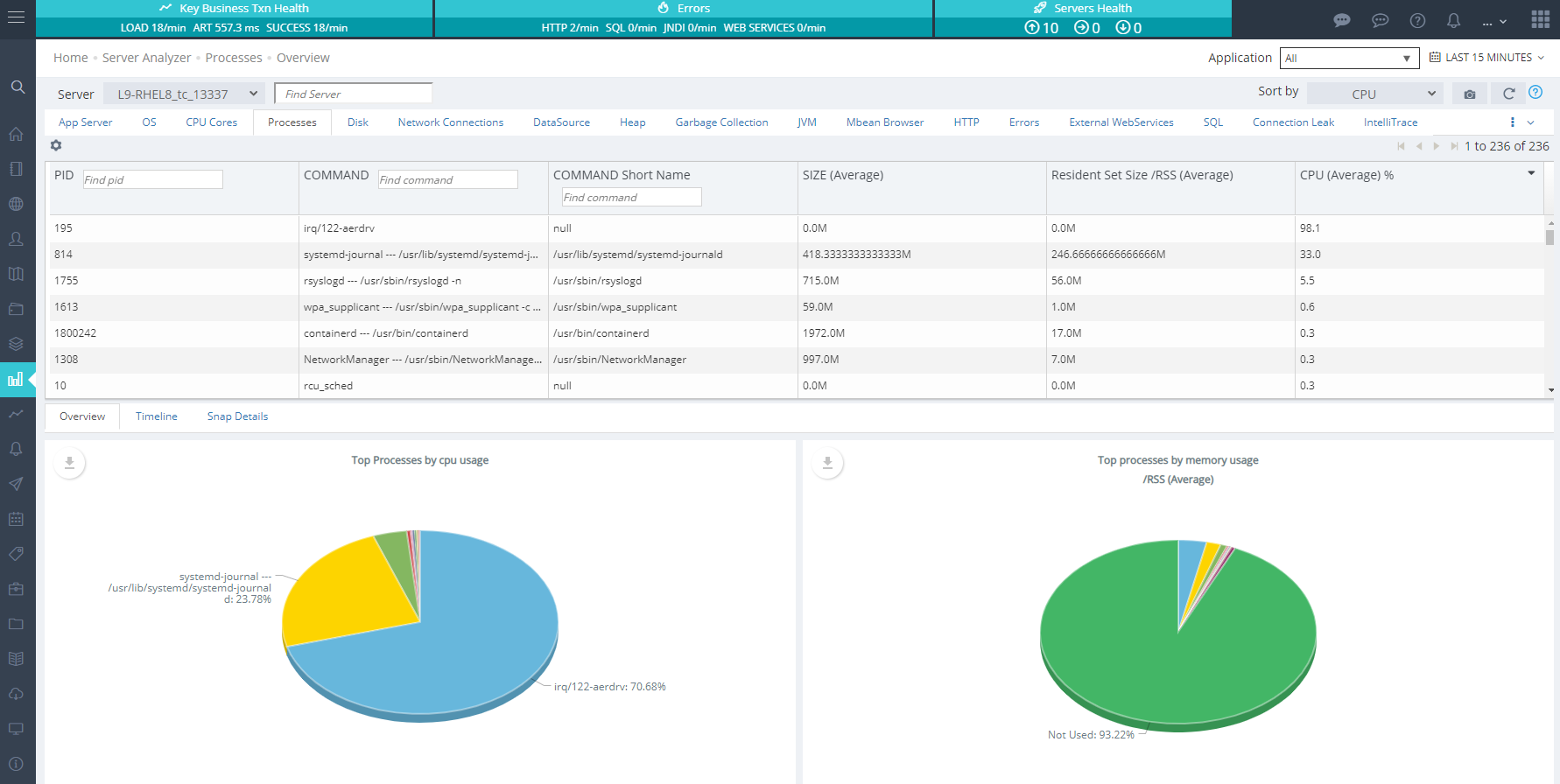 snapshots of various processes running at any point of time and what kind of resources they were consuming at that point of time is available here. Applicare by default would take a snapshot of this info every 30 minutes but this can be configured by changing the snaps interval.