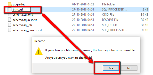 - The “btm” and “schema” sql file type should be ‘SQL File’. See below.
