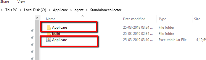 2. If you are going to deploy the agent in the new machine then copy the "Applicare" folder or "Applicare.jar " from the Applicare server machine to Agent machine. If you copied the "Applicare.jar" file then create a folder named "Applicare" and extract the files in that directory.