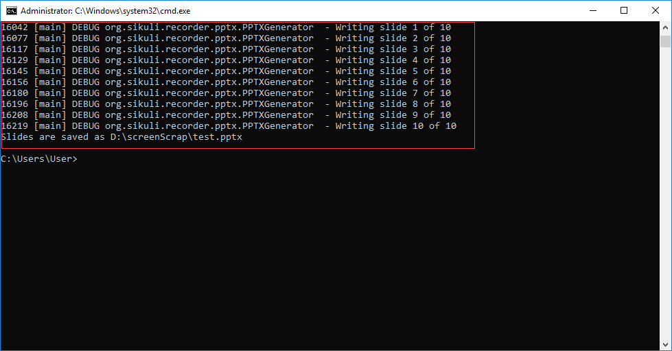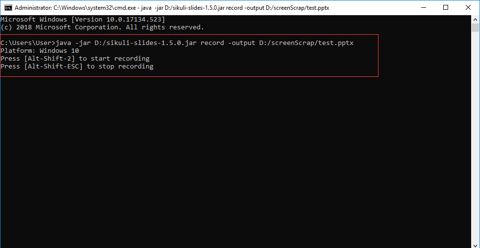 java -jar <jarfilePath>/sikuli-slides-1.5.0.jar record -output <outputfilePath>/<filename>.pptx