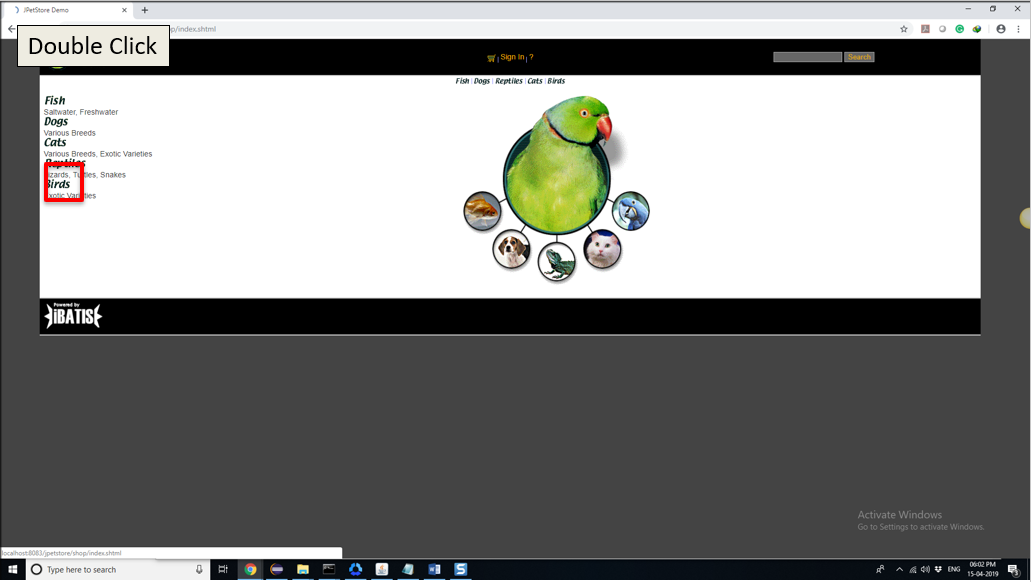 Execute a mouse double click action on a target. To define a double-click action, write the word double click in a text box. You can also write aliases including double-click or double click. Then, draw a rectangle around the target.