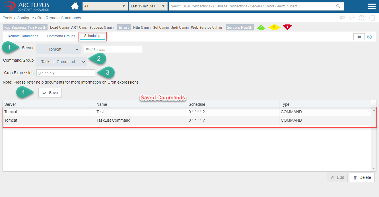 - The below grid will display all the saved commands.