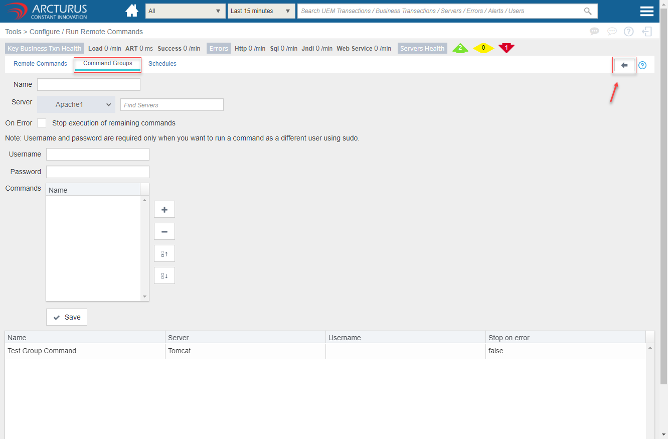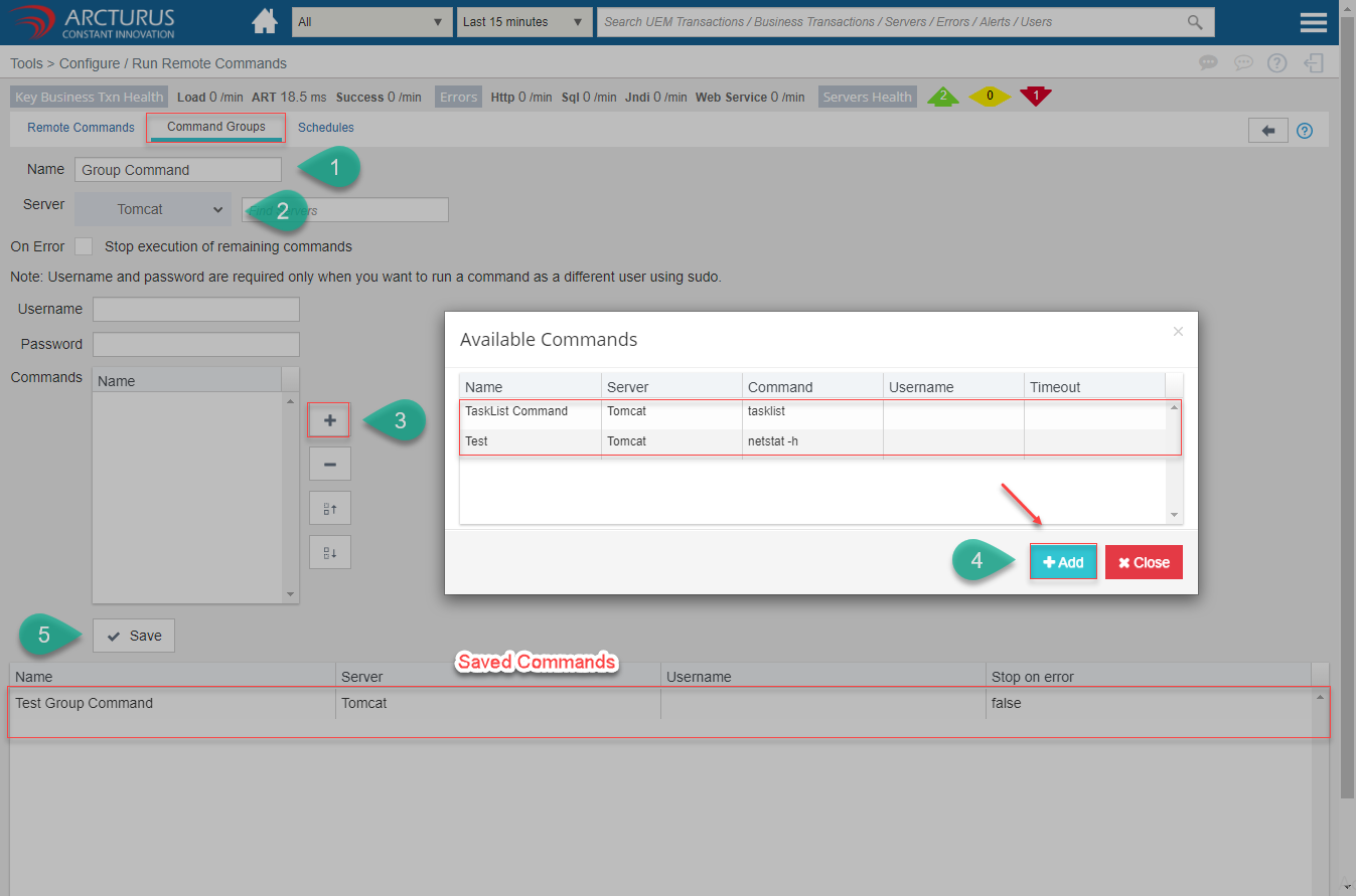 - Select the commands from the Command/Group dropdown.