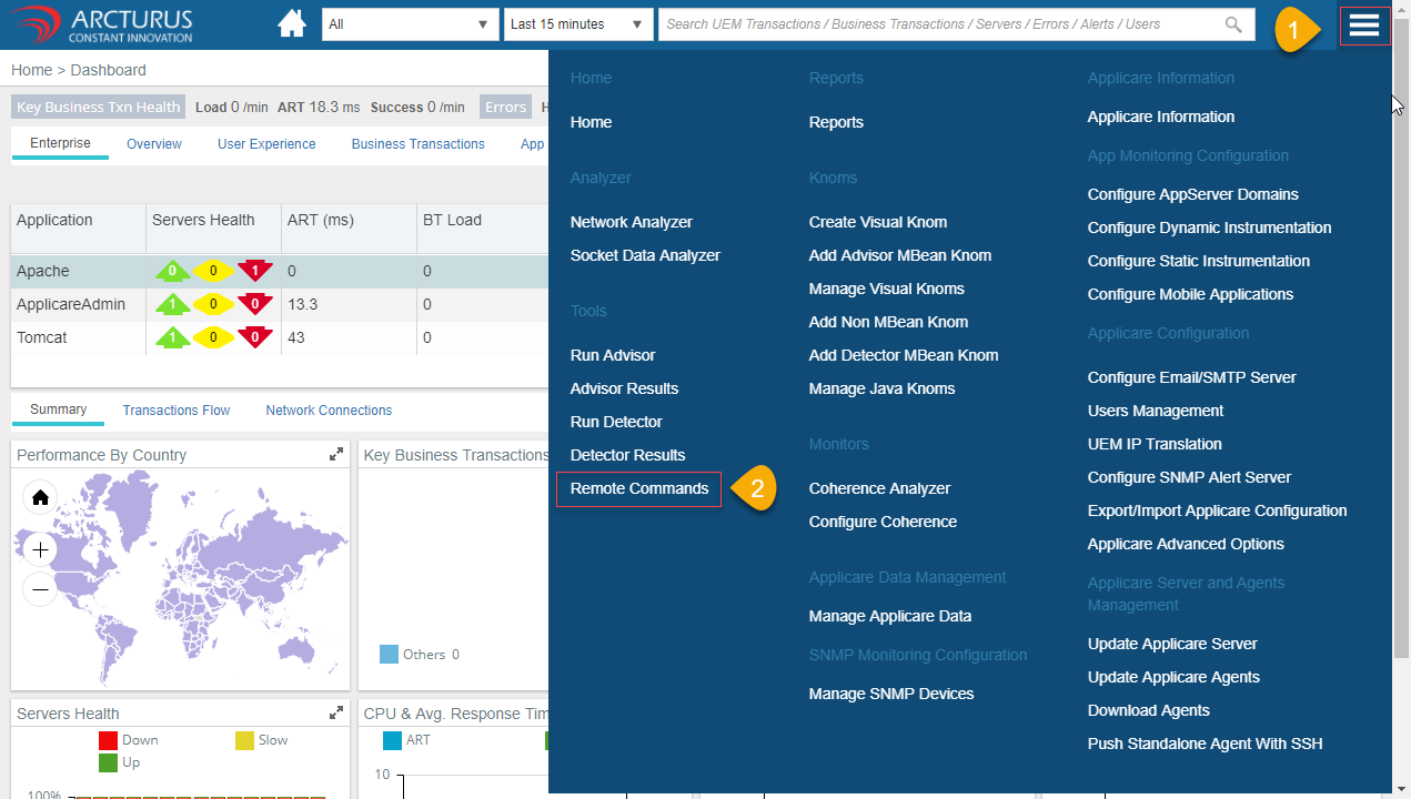Click the "Menu" icon at the top right corner of the screen and select "Remote Commands".