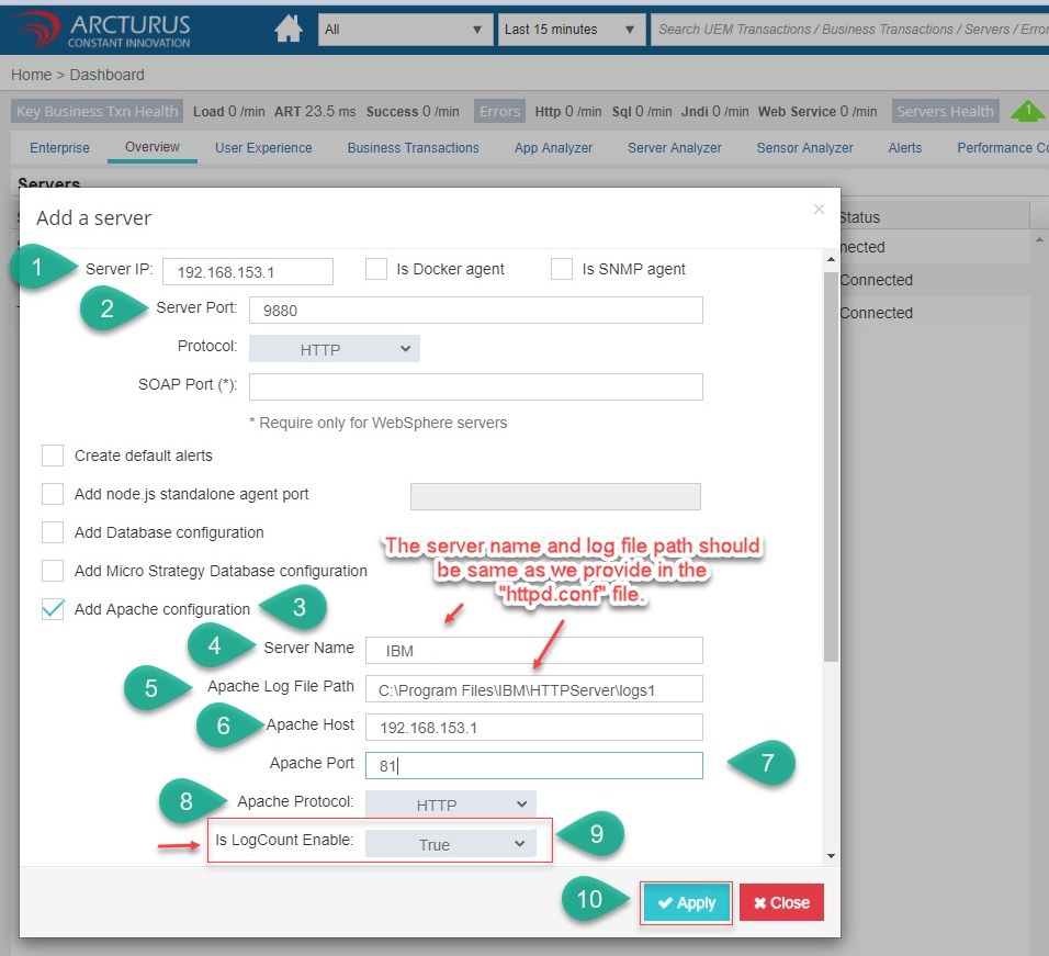 Please follow the below steps to add Apache User Experience Analyzer
