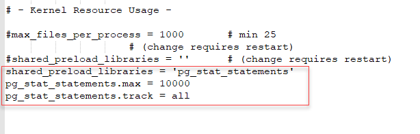 shared_preload_libraries = 'pg_stat_statements'