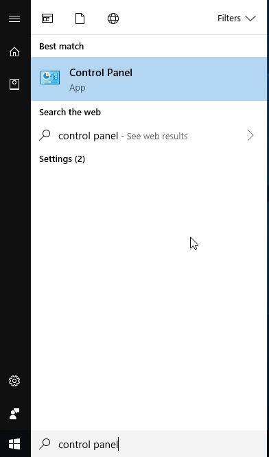 1. Type “Control Panel” in the start and select “Control Panel” option.