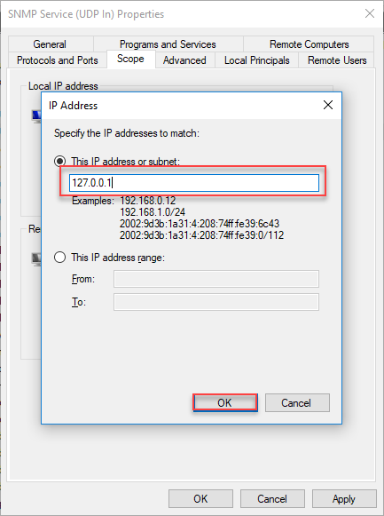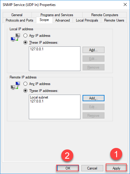 Note: If we are going to restrict the host then we need to specify that host details in both the services and SNMP Service (UDP In) properties. Refer step 14 and 24.
