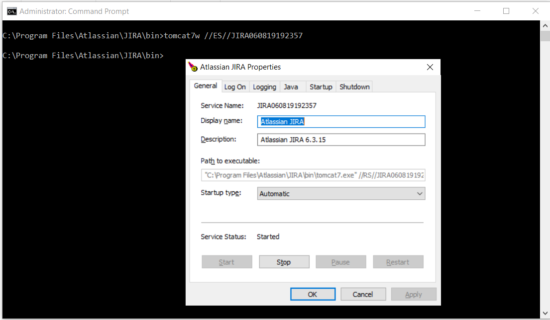 Run command prompt in admin mode and open the JIRA service using the command tomcat7w //ES//
