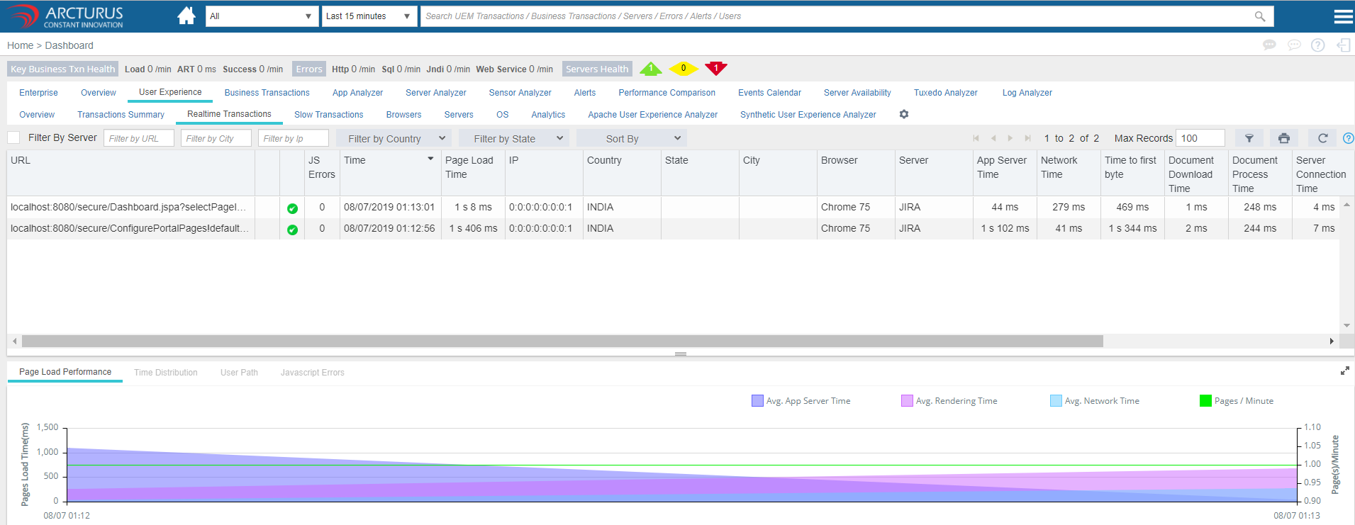 Now make some transactions in JIRA application. Then we will start to see data in applicare dashboard.