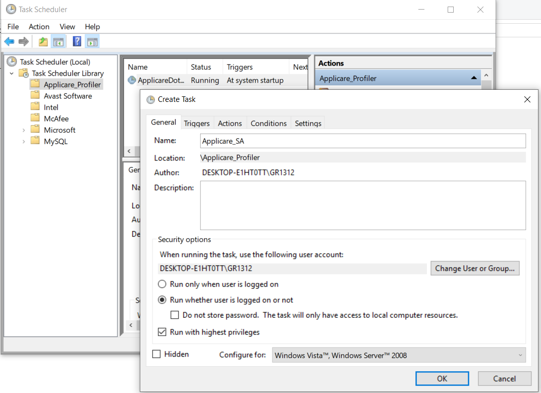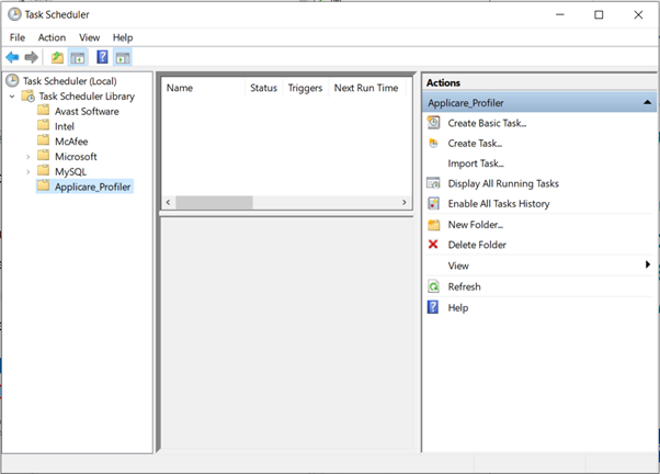 - Expand the "Task Scheduler Library" branch, and select the Applicare_Profiler folder.