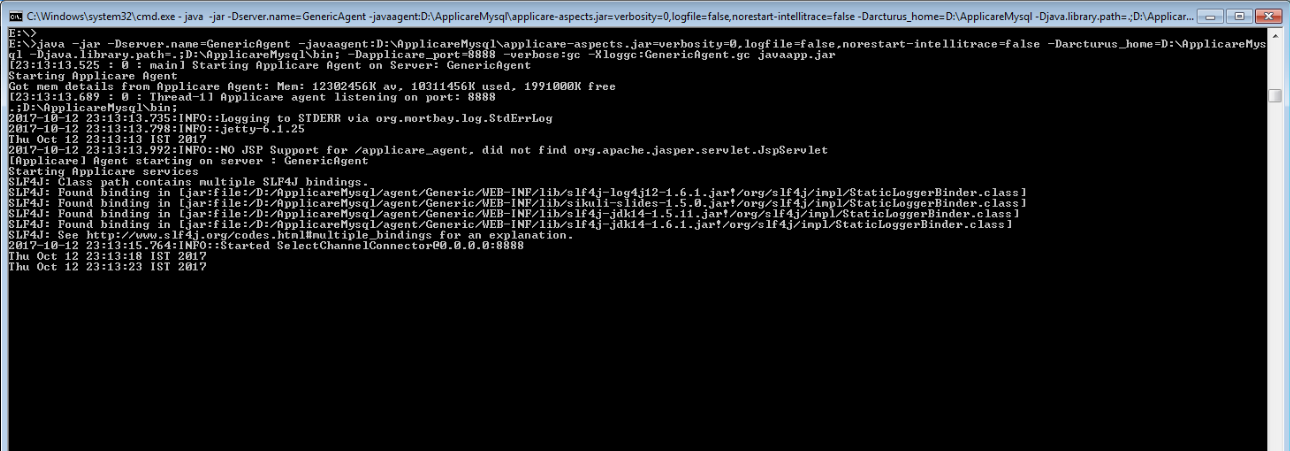 5. Make sure the JVM can increase Perm gen to at least 256MB by adding -XX:MaxPermSize=256m to startup arguments. Server might fail to start with Applicare agent if the perm gen size is too low.