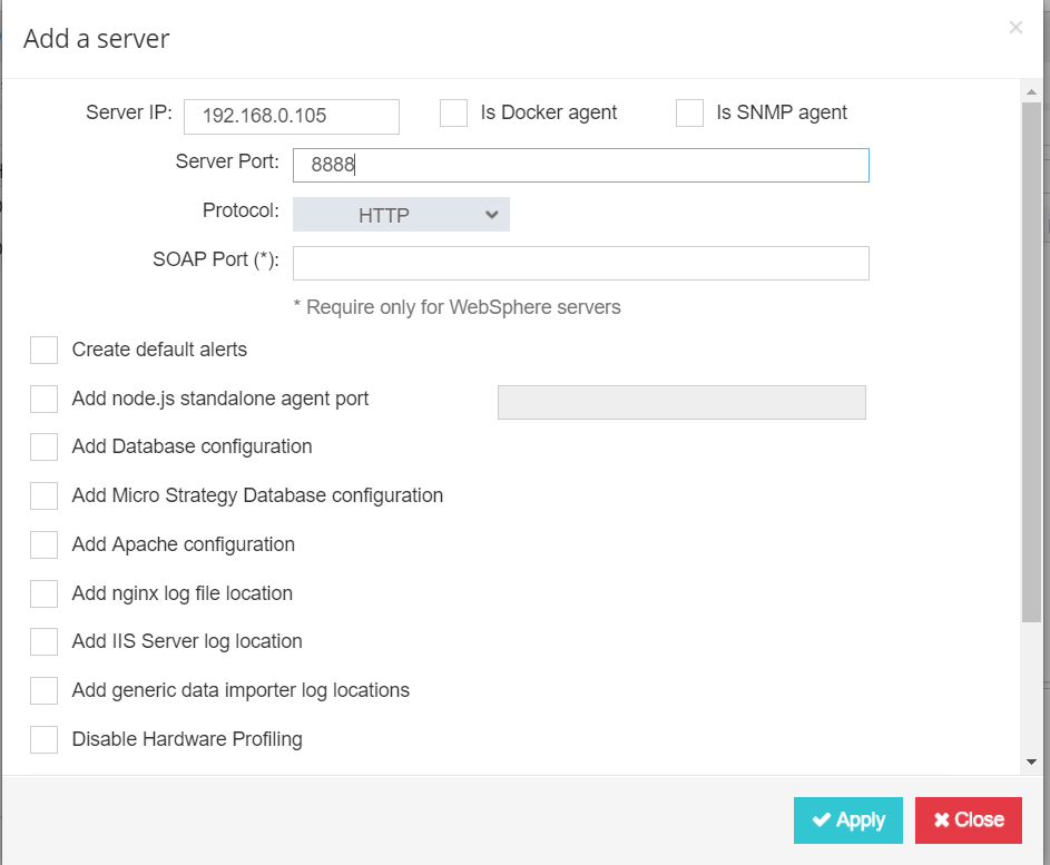 b) To auto add the agent to applicare pass the below arguments in startup (From App 7.5.7)