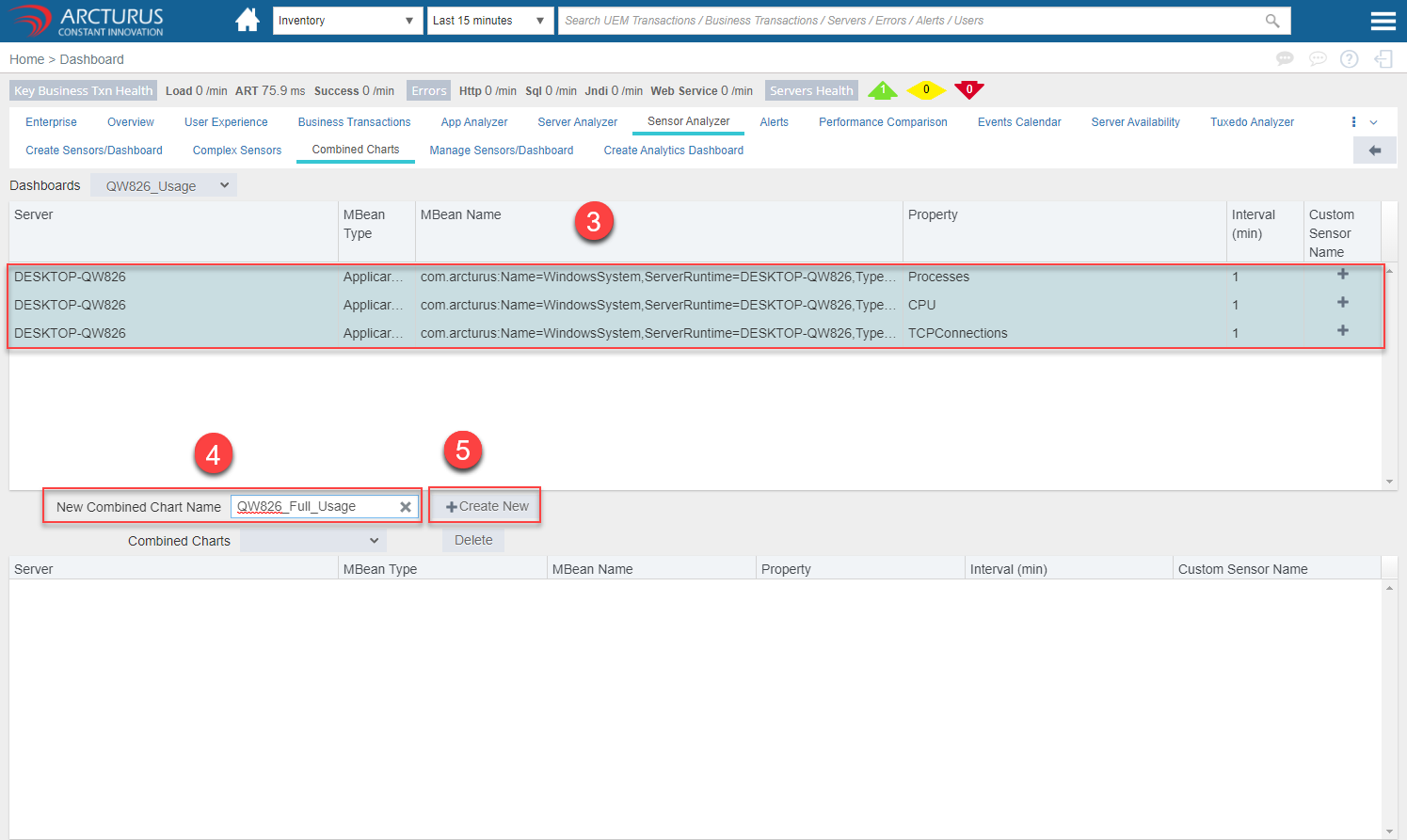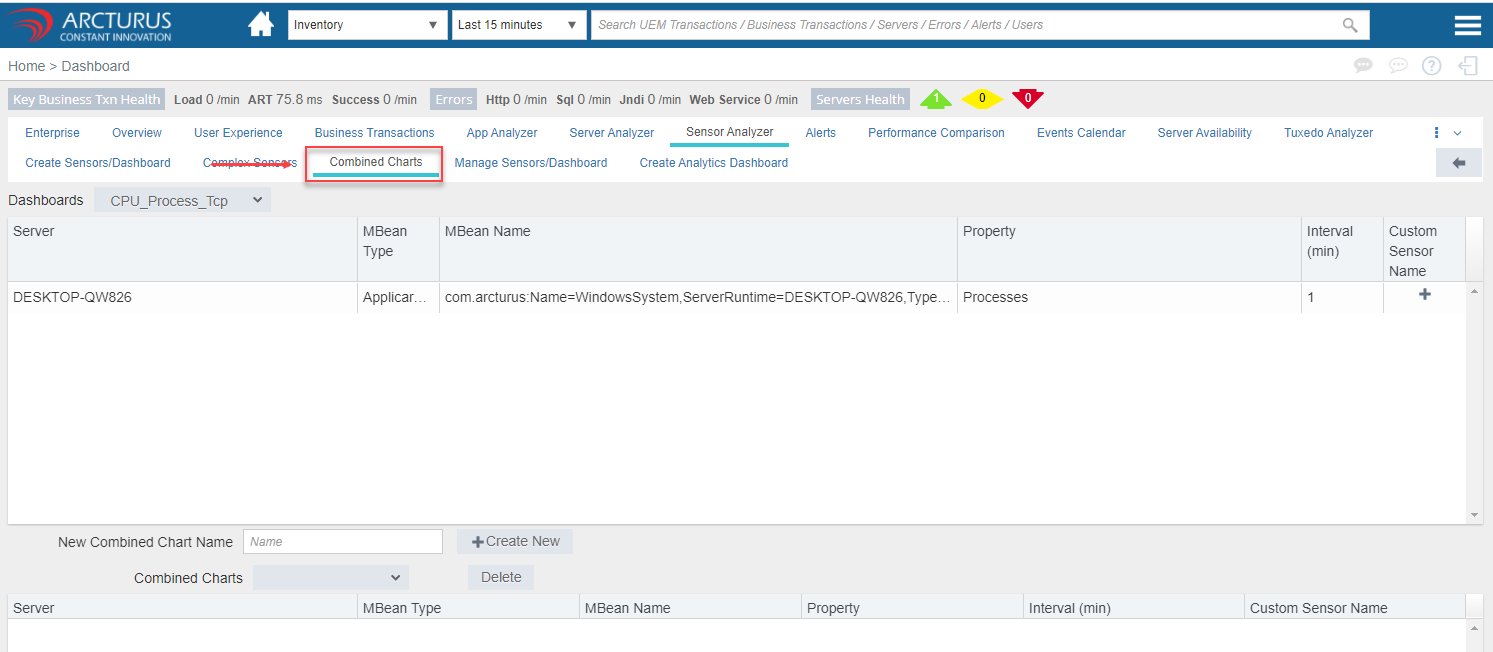4. Enter the name for combined chart in the New Combined Chart name field (title for the dashboard).