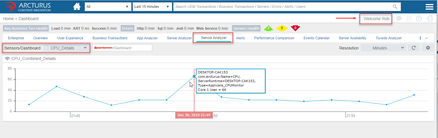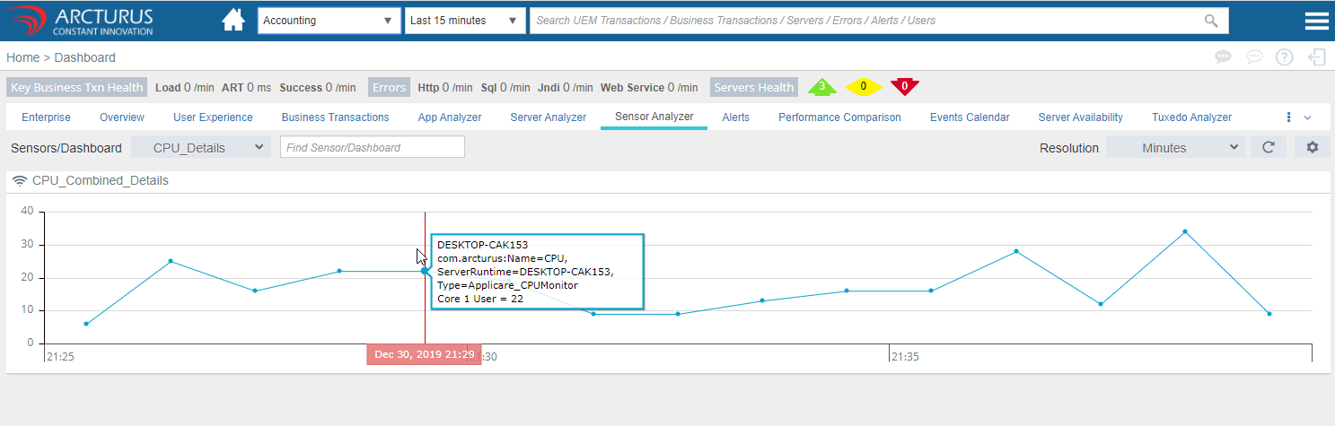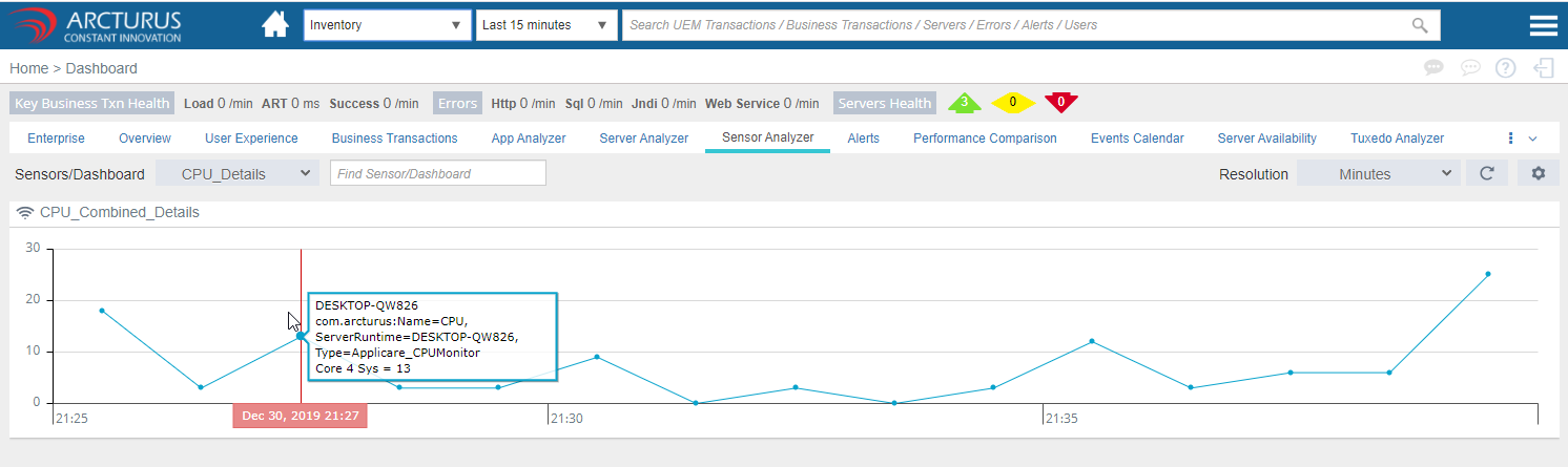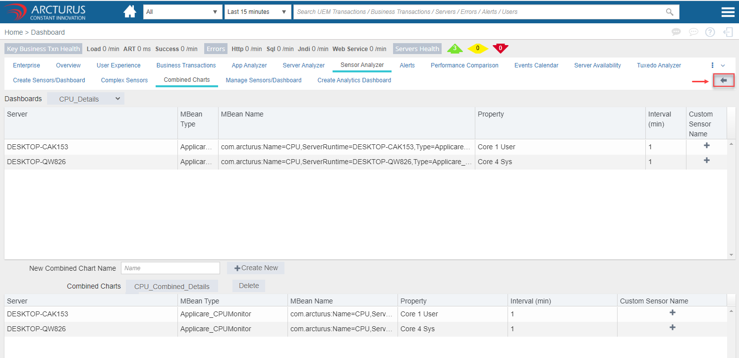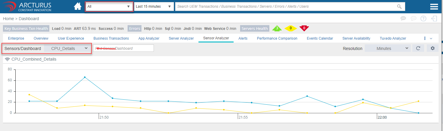 Select the dashboard from the Dashboard drop-down. Combined sensors dashboard will be displayed in line chart.