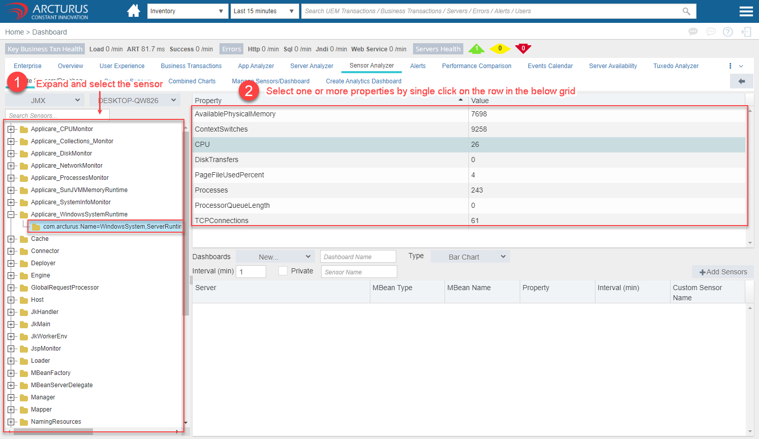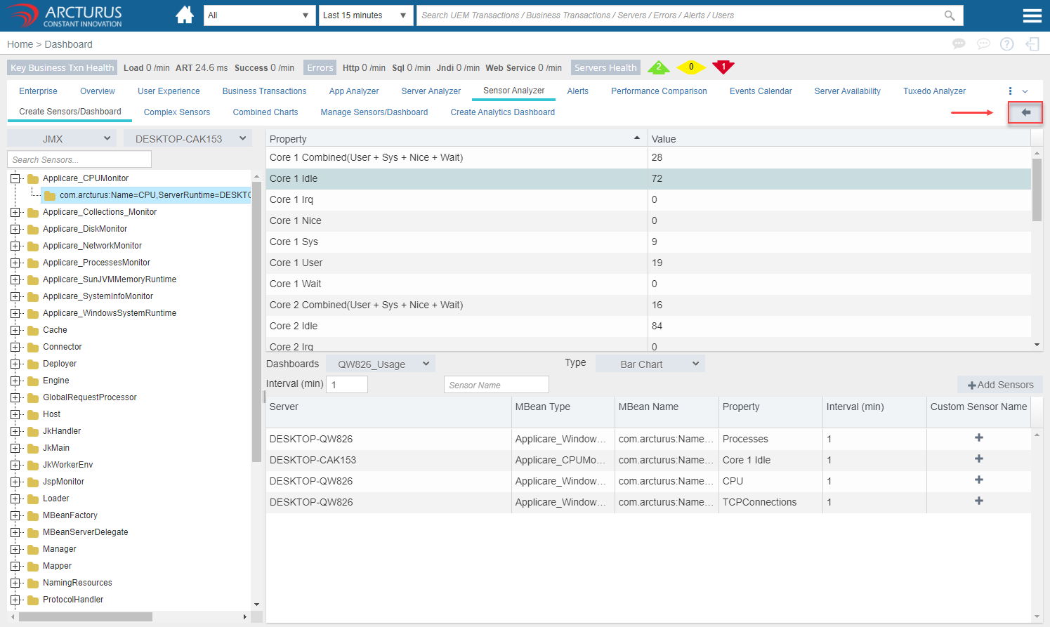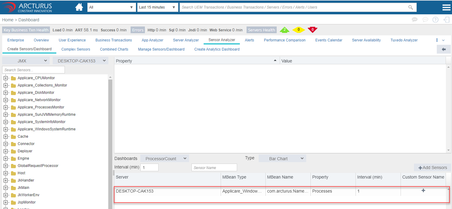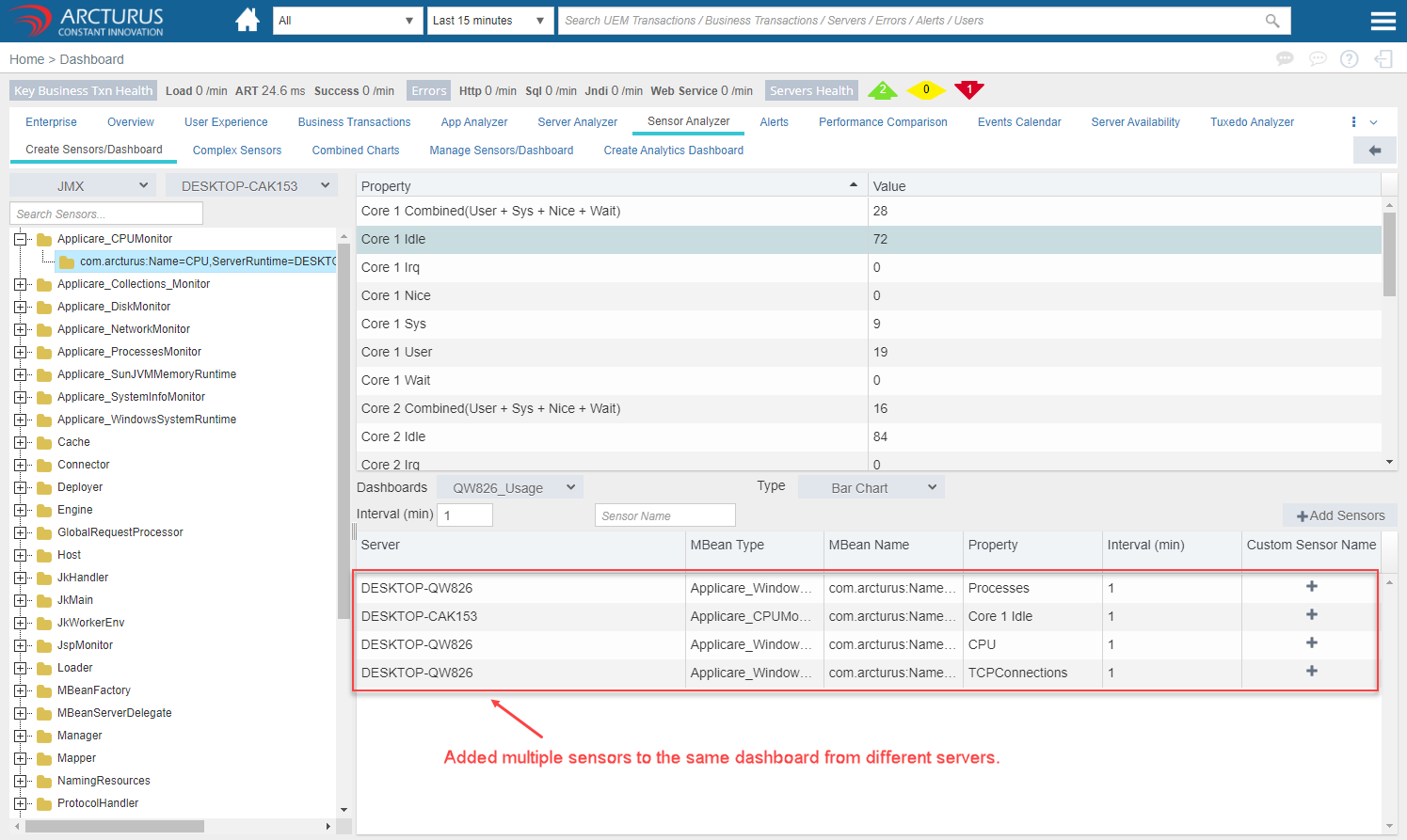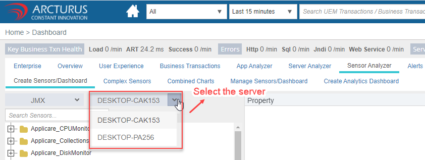 Note: Non-Admin users with access to specific servers will see the sensors for those servers only.
