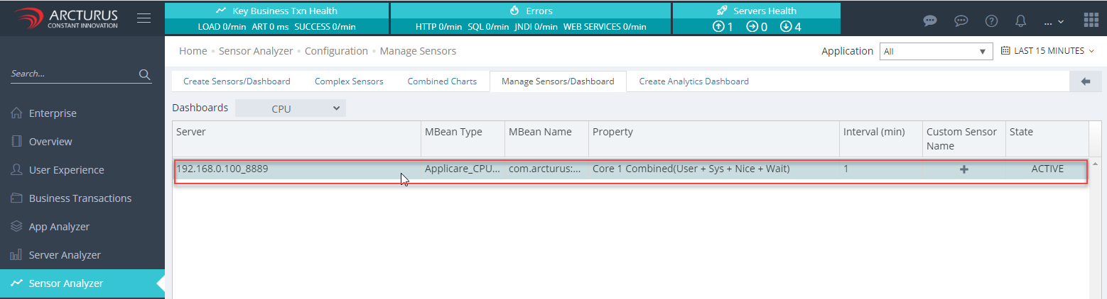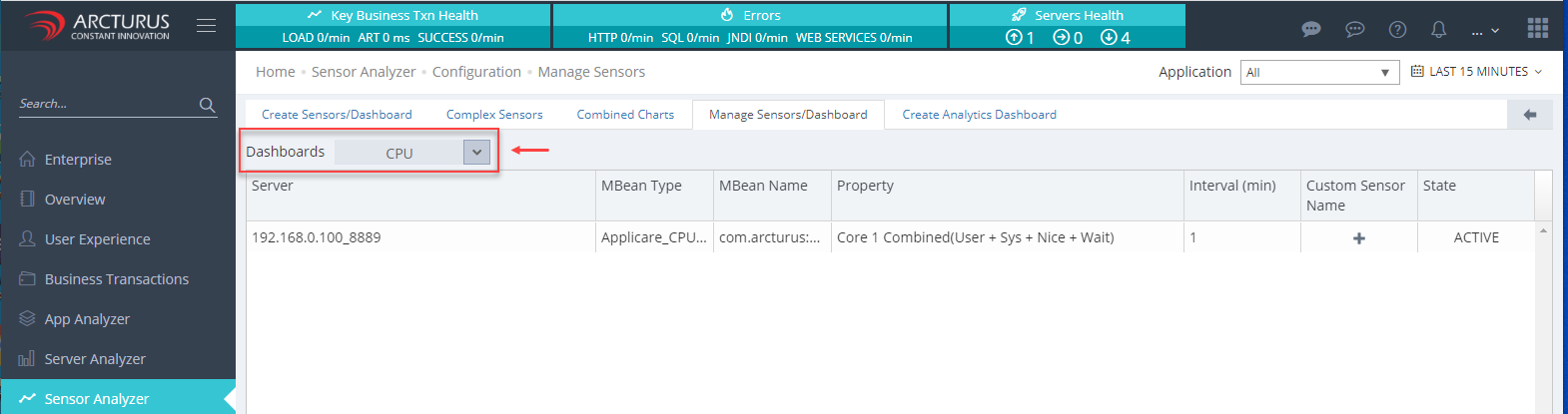 1. Go to Sensor Analyzer -> Dashboard screen and click the Settings (Wheel) icon.