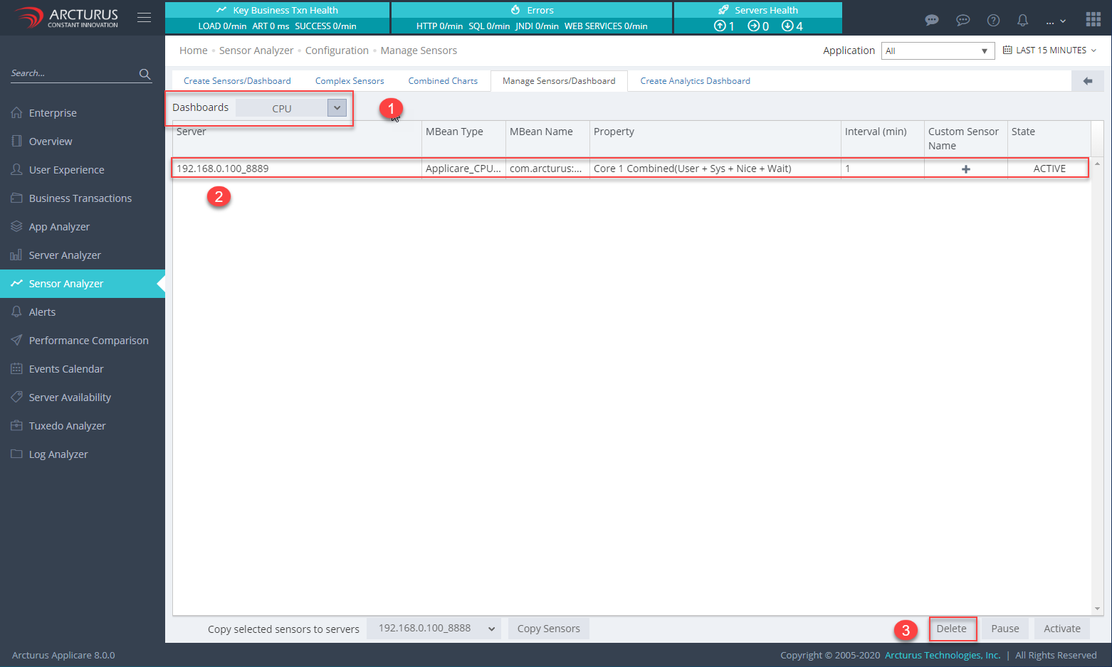 6. Pause Dashboard -> After selecting the rows click the "Pause" button on the bottom of the grid to pause the active dashboard.