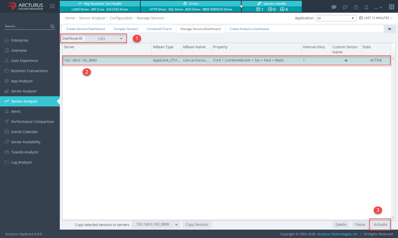 7. Activate Dashboard -> After selecting the rows click the "Activate" button on the bottom of the grid to activate the paused dashboard.
