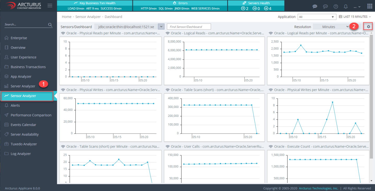 - Select the dashboard name from Sensors/Dashboard drop-down. In this case the dashboard name will be the "DB_URL" which we configured in the overview screen while adding the agent.