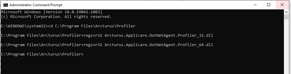 regsvr32 Arcturus.Applicare.DotNetAgent.Profiler_64.dll